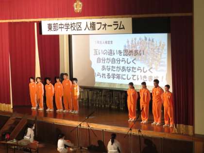 12月7日(金)に校区人権フォーラムが行われました。全体会では各小学校からの発表と中学校の各学年の発表が行われました。