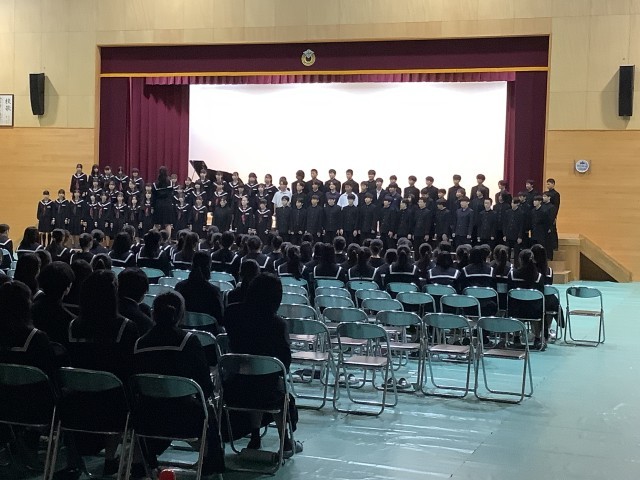 午前中は、クラス合唱と学年合唱が行われました。昼休みや放課後を使って練習した成果が、迫力ある歌声になって第1体育館に響いていました。皆さんの素晴らしい合唱に鳥肌が立ちました。