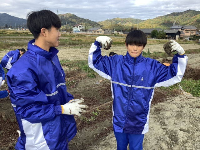 11月19日(水)、1限目・2限目の総合的な学習の時間に、多気土力の会の小川忠康さんの協力で貴重な伊勢芋収穫体験をさせていただきました。