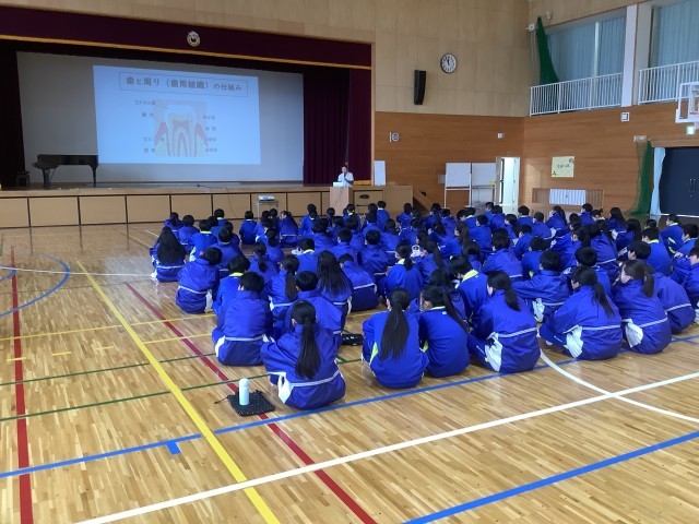 2月5日(木)の4限目に、学校歯科医である「やまゆり歯科」の村田賢司先生に来ていただき、歯科講演会「歯と口腔の健康について」が行われました。虫歯の予防法や歯磨きのポイントなどについて、丁寧に説明していただきました。