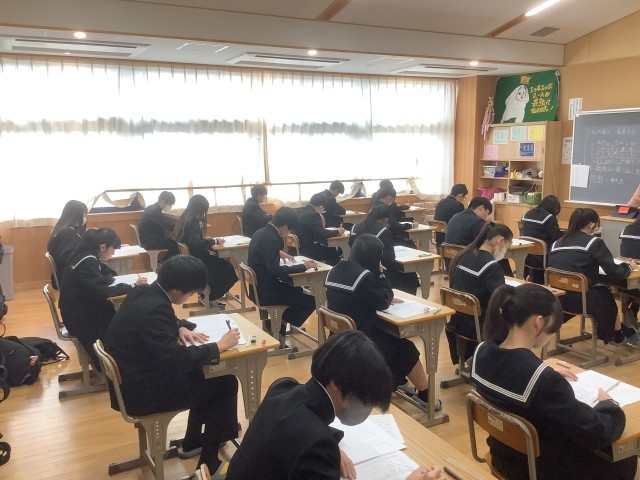 2月10日(火)・12日(木)・13日(金)の3日間、1・2年生は学年末テストが行われています。今年度最後の定期テストです。頑張ってください。提出物のある教科は、忘れないようにしてください。