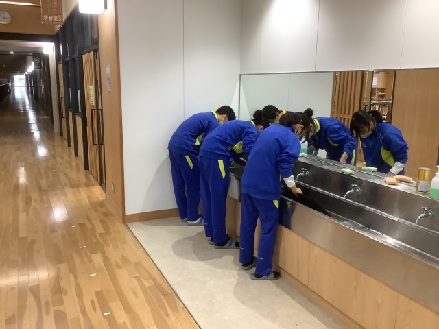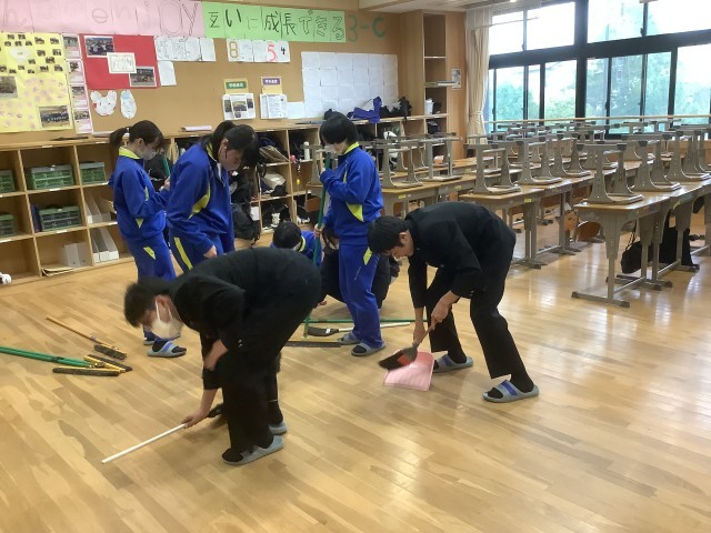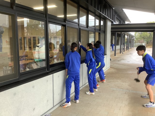 3月3日(金)の6限目に、3年生は奉仕作業を行いました。「身近なことから環境に配慮した行動がとれる。」をめあてに、校内のエアコンフィルターの掃除や校舎1階のクモの巣取り・窓拭きを行いました。3年間お世話になった校舎に感謝の気持ちを込めて、ピカピカに磨いてくれました。ありがとうございました。