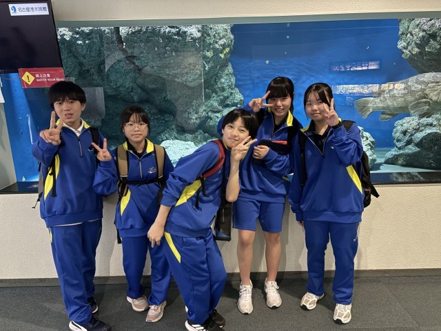 ただいま、名古屋港水族館で散策中です。班で館内を巡りながら、グループ写真を撮った...