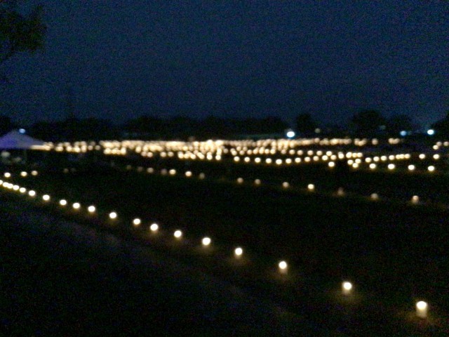 本日、いつきのみや歴史体験館周辺で、『いつきのみや観月会』が開催されました。観月会では、1/10斎宮史跡復元模型の場所に2千本のろうさくが灯され、幻想的な景色が広がり、来してくれた皆さんを楽しませてくれています。今回、地域のみんなで協力して開催するイベントの準備をボランティア部が行ってくれ、無事2千本のろうそくを点灯することができました。時折雨が降る中でしたが、ボランティア部のみなんさんありがとうございました。