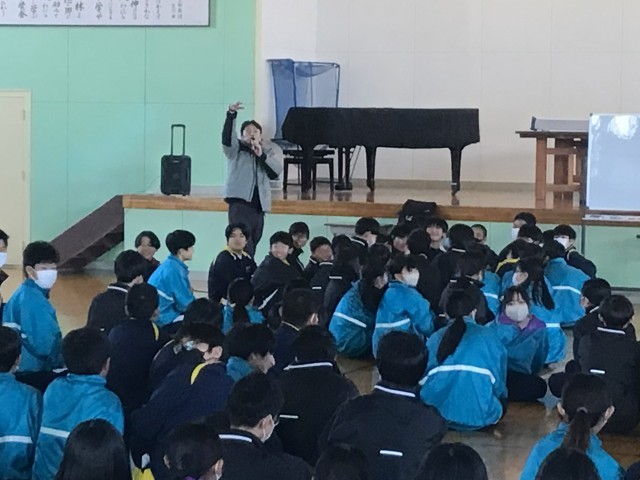 1月13日(火)本日、サンミュージックの小庭康正さんをお迎えし、1・2年生でご講...