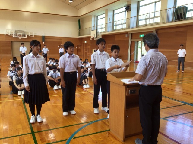 10月14日(火)、後期の始業式と、生徒会本部役員・学級役員などの任命式を行いました。