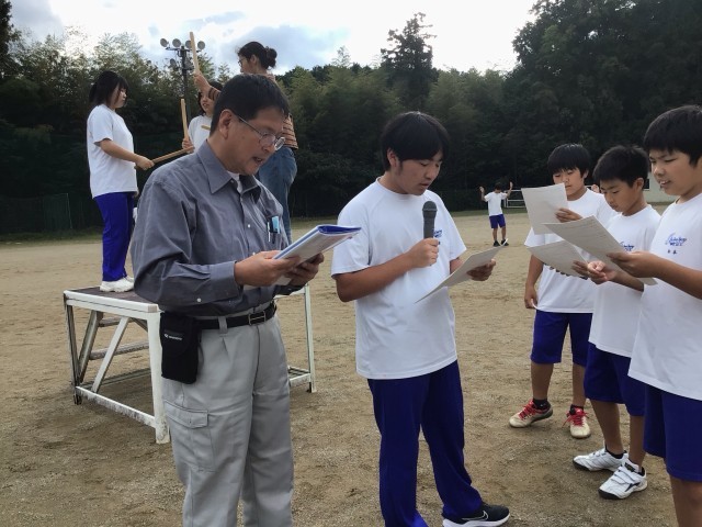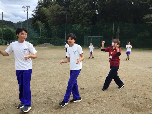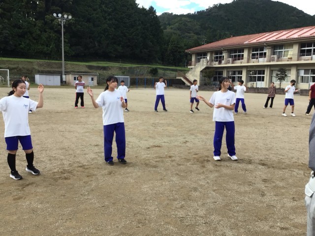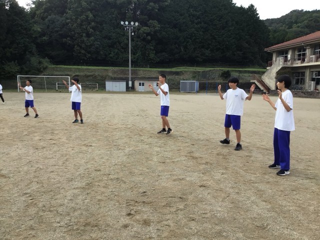 生徒たちは小学校から馴染みのある踊りです。生徒たちは歌に合わせて1・2年生が3年生を囲み、踊りました。