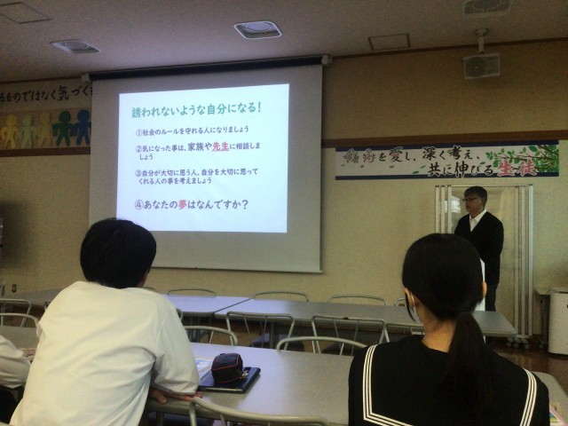 本日は、松阪保護司会より橋爪さんと大西さんにお越しいただき、薬物乱用防止教室を開いていただきました。