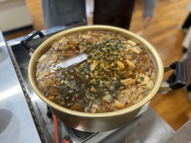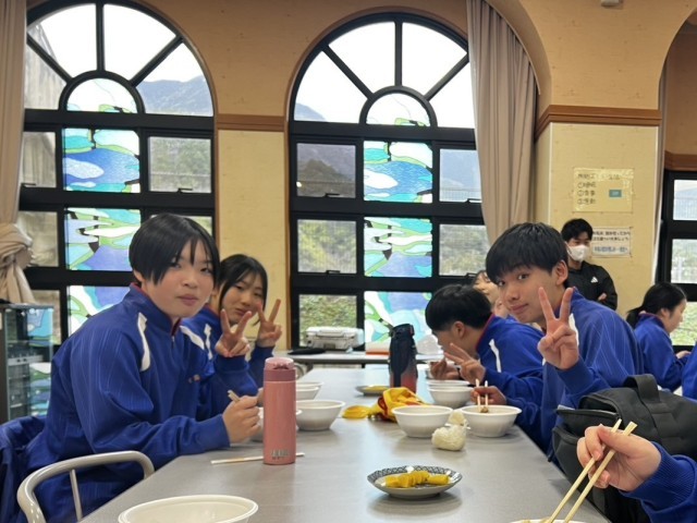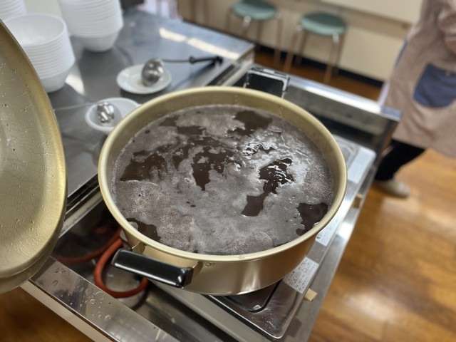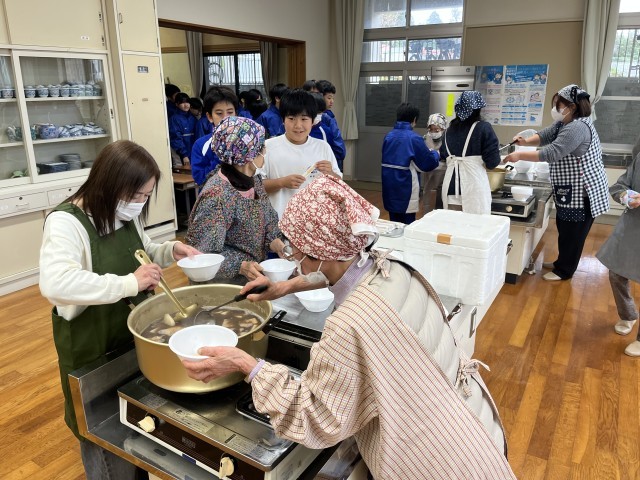 ウォーキングの後は地域の皆様、保護者の皆様に作っていただいた豚汁とぜんざいをおいしくいただき、みんなで楽しい時間を過ごしました。