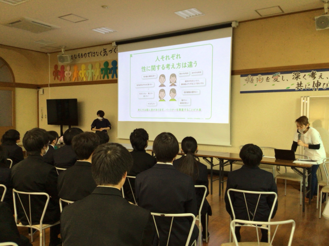 南産婦人科の助産師山口さん、村田さんにお越しいただき、性の教育講演会を実施しました。
