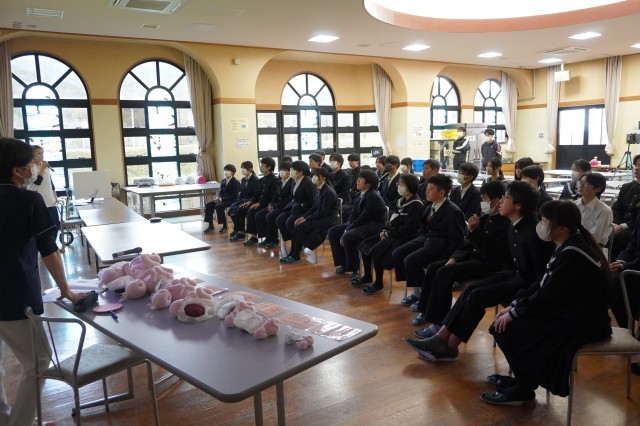 生命の誕生から中学生のからだとこころの変化、ライフプラン、SNSの使い方についてわかりやすくお話をしていただきました。
