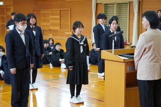 4月10日(金)6限目に、任命式を行いました。前期の学級役員および生徒会専門委員が任命され、一人ひとりが学校の代表としての自覚と責任を胸に、前向きな気持ちでスタートを切りました。