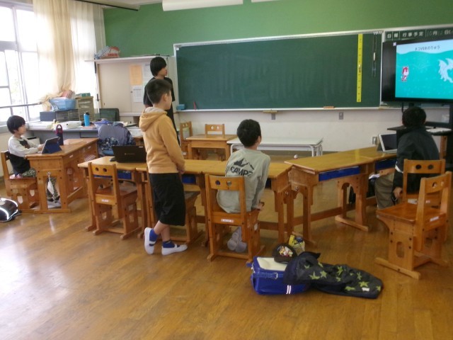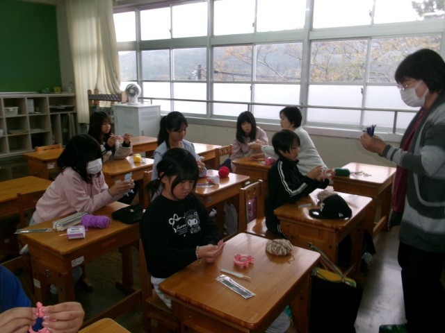 後期最初のクラブ活動がありました。手芸部は今回も地域の方に来ていただき、毛糸を使って編み物やマスコット作りを教えていただきました。スポーツクラブは体育館も運動場使えなかったので、教室でトレーニングをしながらクイズに答えていました。タブレットクラブは自分でプログラミングしたものを発表しあっていました。イラストクラブは学習発表会に向けての作品作り、ダンス部は動画を見ながら次の集会に向けて一生懸命練習していました。