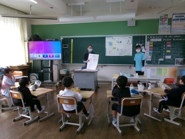 今年も学校歯科医さんに来ていただき、歯みがき指導をしていただきました。一人一人歯ブラシの持ち方や動かし方などを見ていただき、鏡を見ながら確認することができました。とくに6歳臼歯が虫歯になりやすいので、今からしっかりと歯みがきしたいですね。南小学校では、全学年給食後には歯磨きをしてから遊びに行くことになっています。ご家庭でも歯みがきの様子など見守っていただければと思います。