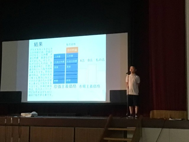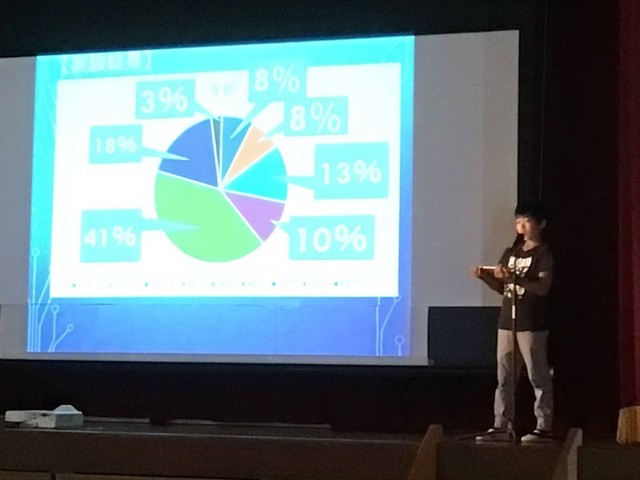 今年の大江プロジェクトは、個人研究に取り組んでいるため、学習発表会とは別に大江プロジェクト発表会を行いました。これまで6年生が中学校へ行き、ゼミとして中学生とともに研究を進めてきた成果を一人一人発表しました。一人でプレゼンを作り、発表原稿を考え、みんなの前で発表するという、とても貴重な経験となりました。かなり緊張したと思いますが、6年生全員が堂々と、しっかり発表することができ、とてもすばらしかったです。原稿を読むのではなく、自分の言葉で伝えることができ、これまでの努力が会場全体に伝わる発表となりました。また、自分の発表だけでなく、他の人の発表に質問したり、意見を言ったりしながらしっかりと聞くことができ、これまでの大江・南プロジェクトの探究学習としての成果を感じることができました。参観に来ていただいた保護者の皆様、地域の皆様、どうもありがとうございました。
