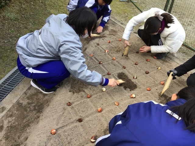 12月12日(金)生徒会本部役員が花壇にチューリップの球根を植えてくれました。
