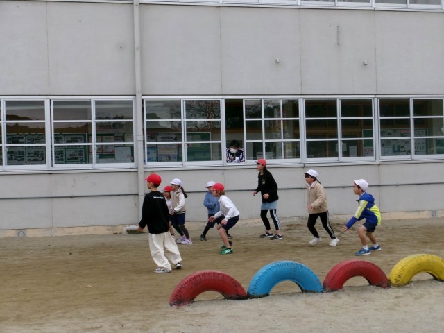 12月のたきなが班遊びです。寒さに負けず、この日もみんな元気に運動場で遊びました。学年を超えて、先生たちも入ってみんなで遊ぶ、あったかい時間になっています。