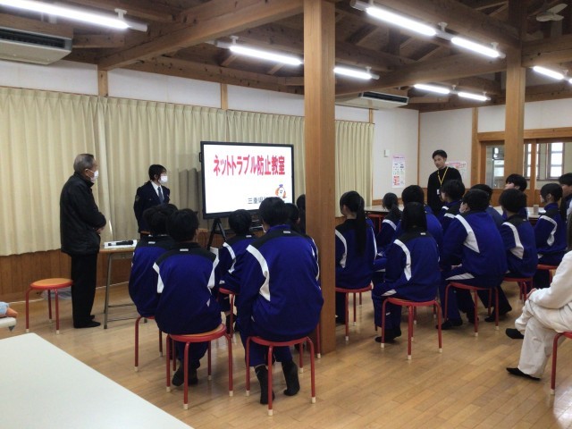 1月30日(金)6限目に、松阪警察署生活安全課の方を講師にお招きし、ネットトラブル防止教室を実施しました。