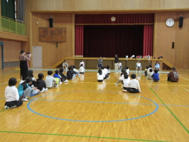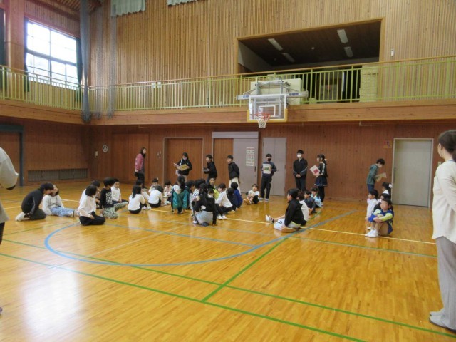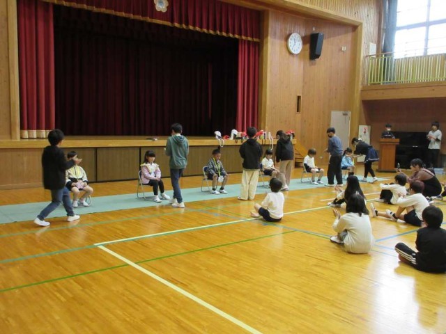 6人の1年生を迎える会を体育館で行いました。