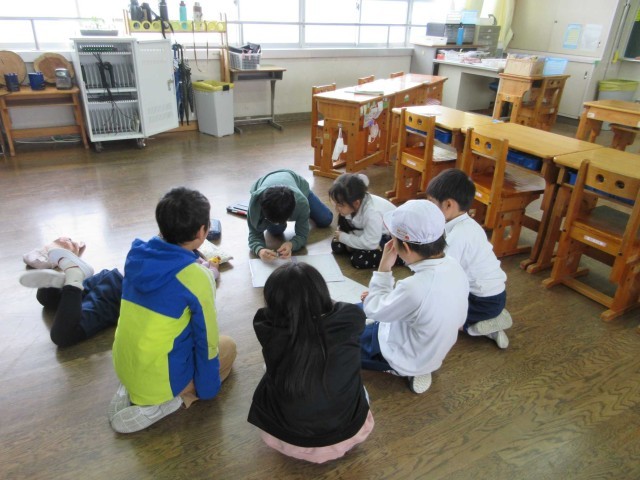 上級生の拍手の中、1年生が入場した後、一人ひとり自己紹介をしました。緊張していた様子でしたが、しっかり話すことができました。その後、6年生から歓迎のあいさつをしたり、6年生の手作りメダルを1年生にかけたりして、1年生も嬉しそうでした。迎える会の後は、たきなが班に分かれて、班の交流会や掃除の担当決めをしました。最後に、たきなが班で記念撮影もしました。