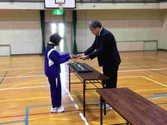 4月13日(月)、タブレット貸与式を行いました。本年度からキーボード・タッチペン付きの新しいタブレットが導入され、生徒一人ひとりに校長先生から手渡されました。今後は、使用ルールを守りながら、授業で活用し、個別最適な学びや協働的な学びを深めていきます。
