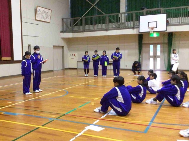 その後の生徒集会では、執行部一人ひとりから就任のあいさつがあり、生徒会スローガンや各委員会の取り組みが発表されました。