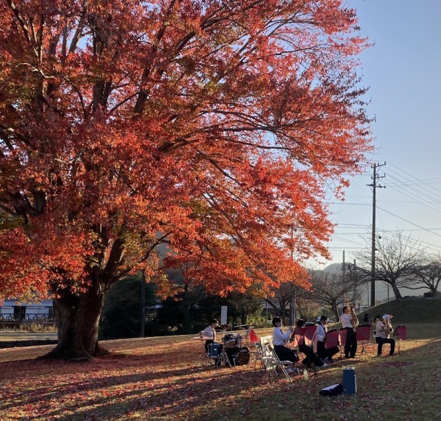 このコンサートは平成28年度より始まり、今年で10回目の開催となります。野外コンサートとして、吹奏楽部が例年紅葉したハナノキの下で、日頃練習してきた成果を生徒や地元住民の皆様に披露しています。
