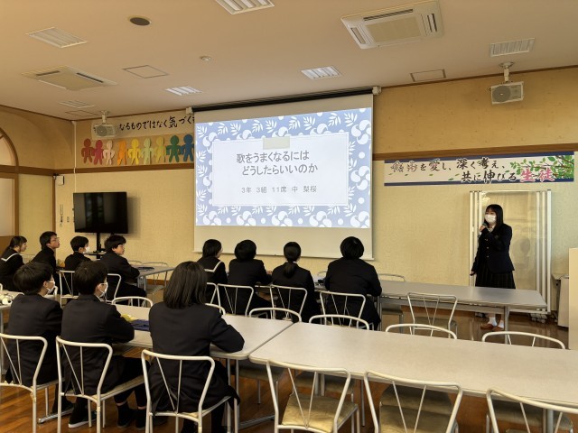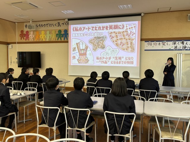 中高一貫交流の行事として、飯高中学校へ本校三年次の3名が出向き、いいなんゼミ発表を行いました。