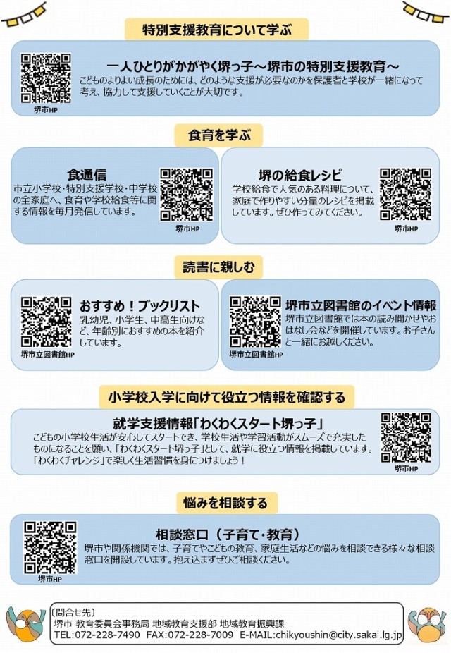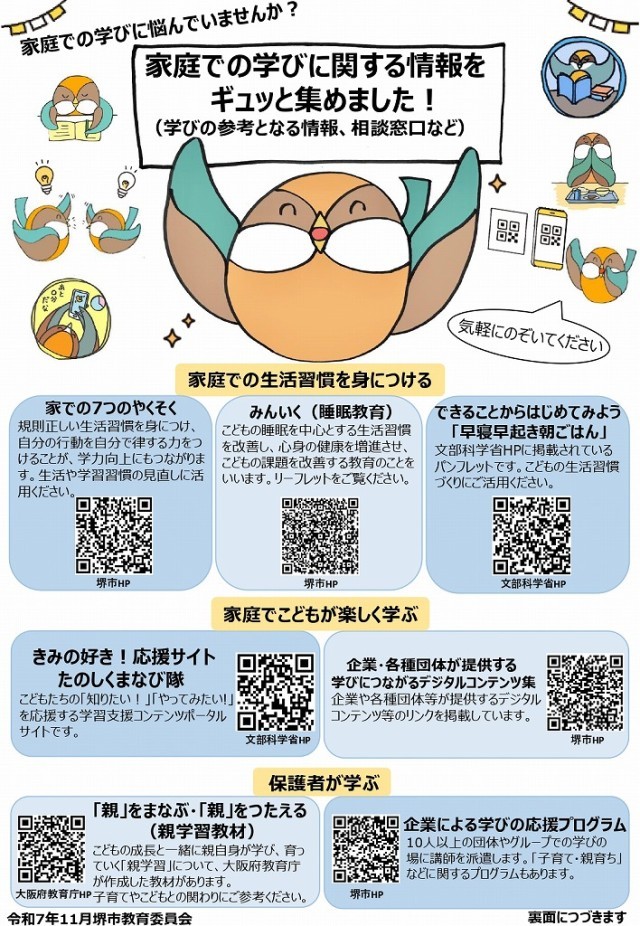 堺市教育委員会では、家庭教育支援に関するさまざまな取組を行っています。
