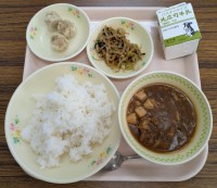 11月17日 学校給食は、牛乳 ごはん マーボー丼れんこんしゅうまい 炒めナムル...