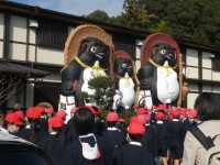 • 大きなたぬきがお出迎え!たぬき村到着!
