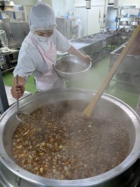中学校 給食時間の一コマです。一枚目の写真。給食時間にたくさん席をたっているよう...