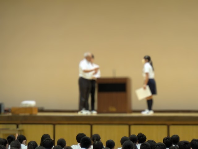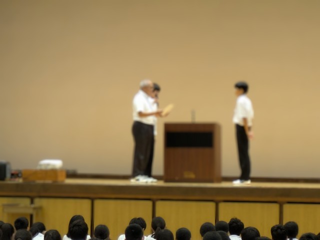 毎月の全校集会では、校内外で活躍した生徒たちの表彰を