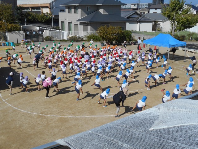 今日の体操集会は、運動会に向けて入場行進から始まりました。