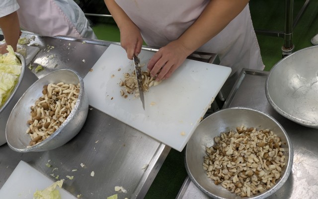 しめじも写真のように、調理員さんが細かく刻んでくださっています。