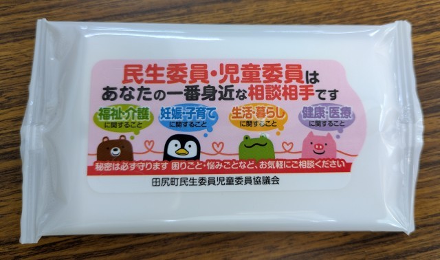 中学校正門前で、ウエットティッシュを配布してくださりました。