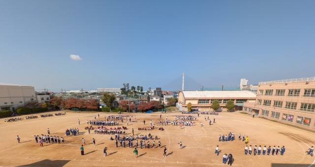 田尻町立中学校 伝統の競技「みんなでジャンプ」。