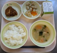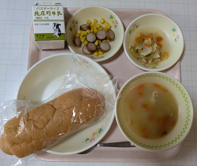 ウインナーとコーンのオーブン焼き さつまいものポタージュでした。