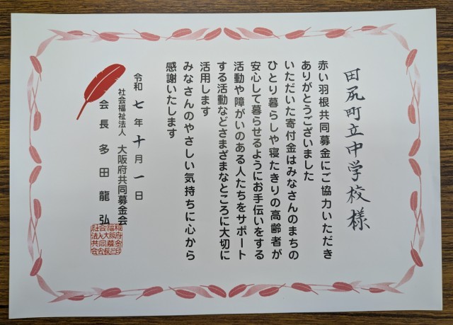 赤い羽根募金は、田尻町の福祉に役立てていただけます。