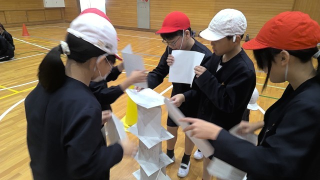1月19日(月)5時間目に泉南支援学校から田尻町に住む小学5年生の仲間が来てくれました。5年生みんなでボールむかでリレーやペーパータワー、じゃんけんボーリングなどの活動を行いました。温かい雰囲気の中、笑顔あふれる楽しい時間になり、同じ田尻町に住む5年生の仲間みんなで関係を深めることができました。