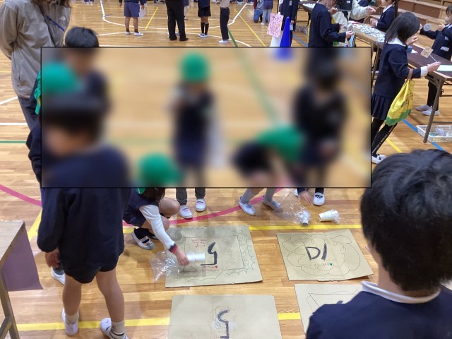 小学校の体育館には、2年生が作ってくれたたくさんの手作りおもちゃのコーナーがありました。