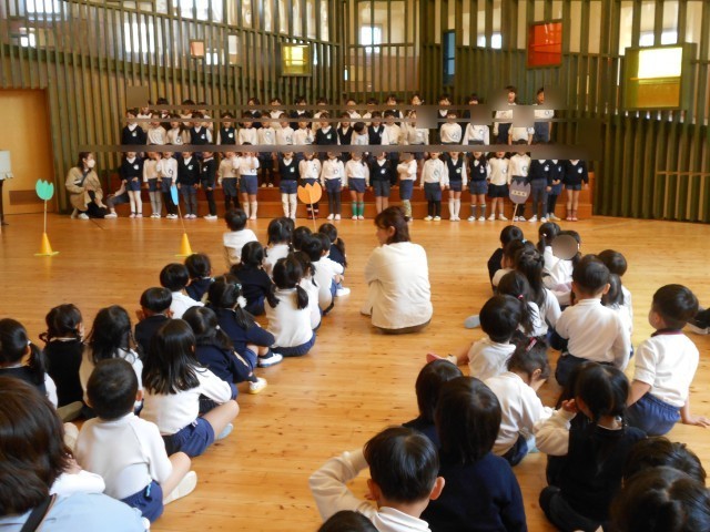 また、年長児が「きみたちきょうからともだちだ~♪」と歌を聞かせてくれたり、改めてクラスの先生を紹介したりしました。