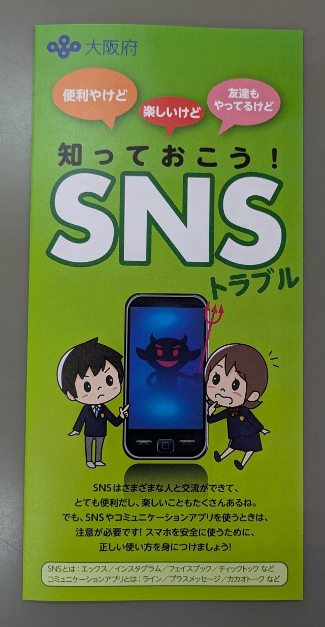「知っておこう SNS」のリーフレットを