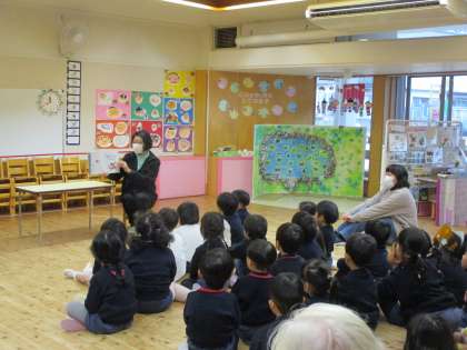 紙芝居や絵本、手遊びなど楽しいメニュー盛りだくさんで、あっという間に時間が過ぎました。特に参加型の絵本は人気で、笑顔もたくさんこぼれます。