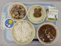 9月17日 学校給食は、牛乳 ごはん 里芋フライ くきわかめのきんぴら泉州野菜の...