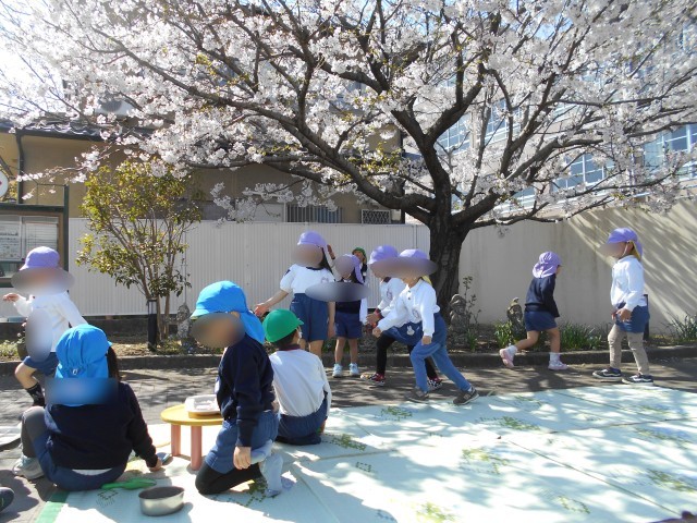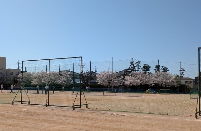 満開の桜のもと、放課後クラブ活動をする生徒の様子です外での活動がとても気持ちのい...