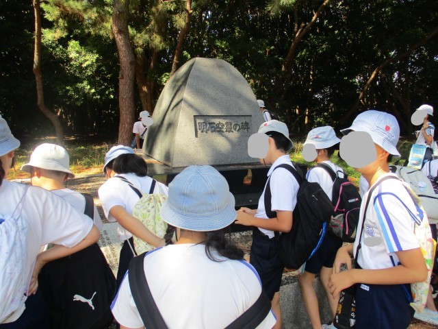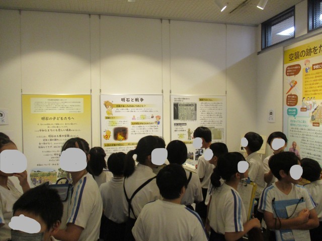 10月7日(火)6年生は、明石文化博物館で明石の空襲に関する講話を聞き、当時の写真や資料を見学しました。戦争中の人々のくらしや、空襲で多くの命が失われたことを知り、平和のありがたさを深く感じました。その後、明石公園にある「明石空襲の碑」を訪れ、公園で実際に起こった出来事や、当時の町の様子についての話を聞きました。今回の学習を通して、戦争の悲惨さや平和の大切さを自分たちなりに考えることができました。これから学んだことや感じたことを新聞にまとめ、平和への思いを伝えていきます。