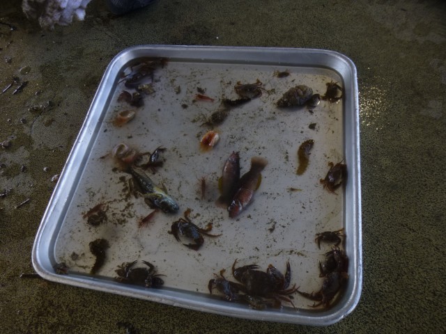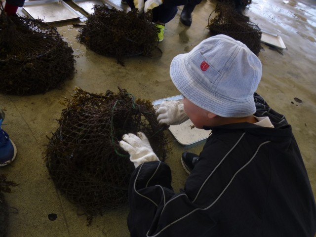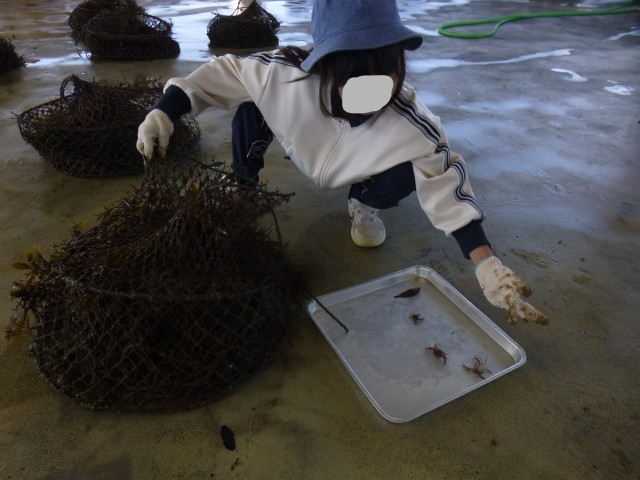 10月7日(火)に明石浦漁港に校外学習に行きました。前回ナマコを育てるための網を入れてから4か月。どれぐらいの生き物が入っているか・・・引き上げられた網を広げると、様々な生き物が網の中に入っていました。5年生のみなさんは初め、恐る恐る生き物を触っていたのですが、時間がたつごとに慣れてきて「これはなんて名前の生き物?」と漁港の人に積極的に聞いていました。漁港の方からは「ナマコが暑さでなかなかいない」というお話も聞きました。「豊かな海」にはたくさんの課題があるなと改めて感じたところです。今後の総合的な学習の時間にみなさんのアイデアを考えていきたいと思います。