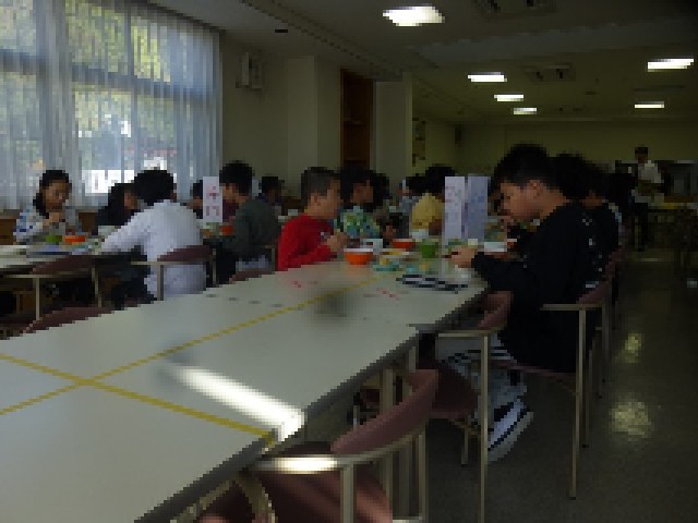 食事は、施設の人とリーダーさんと食事係が配膳をしています。たくさんおかわりをして、感謝していただきました。