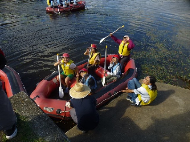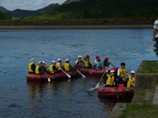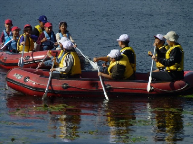2日目の午前中のプログラム1つ目はボート体験でした。天気も良く気持ちのいい風が吹く中、池を散策しました。班で掛け声をかけながら、協力して楽しくオールを漕ぎました。